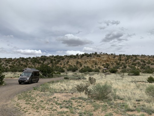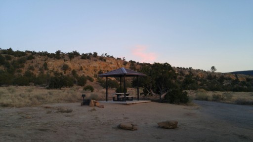 The road in here seemed a bit long but was well worth it. It's FCFS and only 10 sites but we thought would b ok as it was February. There were only 2-3 others there. Very quiet. Pit toilets were very clean. No Rangers around as they r only in the area late in the week. Sites have covered picnic tables and were generally level. We walked our dog around the circle. Felt pretty safe even though it's very remote. Internet was ok but limited bars. No water but we were good. We liked this campground so much we relaxed a bit, went into town of Grant's and did laundry. Not sure what the name of the laundramat was but folks weren't very friendly... we folded quickly and got out of there. Joe Skeen is real close to the Sandstone cliffs site and the V Arch site down the road. We spent an afternoon going to both. We would def stop here again but maybe not in the busy season.