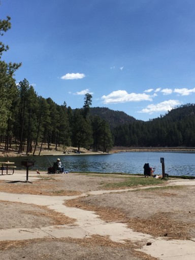 Fenton Lake is a beautiful location, but the campground was designed when tent camping was the norm. Maybe 10-15% of the sites are suitable for a 20' RV and then you have deal with tow vehicle parking. Some sites are level-ish, but many require considerable blocking effort to level. There is a single drinking water spigot at the boat ramp. So bring your 5 gallon water jugs to transport water. Nearest groceries are available in La Cueva (10 miles) and fuel in Jemez Pueblo (30 miles). No cell service. FYI NM126 from Seven Springs to Cuba has a 15 mile section not yet paved that can be a white knuck adventure to drive when wet or snow covered. I would not pull my 25' travel trailer through this even when it is dry. This is a popular destination so weekends and holidays are very busy. I do use this park as a base for area fishing during the work week and sleep in the shell of my truck. Quite pleasant!