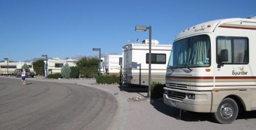 Beautifully designed park, with visual divider landscaping between parking sites. Roads are paved with curbs, and the parking pads are level packed fine crushed rock. Office and customer lounge is southwest decor. Very well appointed. This park is definitely designed with big rigs in mind. Very wide entry road. Views of the Organ Mtns are spectacular at dawn and sunset. All utilities (electric, water, sewer, cable TV) are functional and well maintained. It is a one mile walk to the oldest town square in New Mexico. Many interesting shops and eateries. The only negative for this park is the WiFi. Although the signal appears strong, getting up and downloads takes forever. Sometimes you get bumped off line completely. Taking a computer to the office/lounge does not improve things. We had to use our Verizon MiFi to do email. You could also go to McDonalds, Starbucks, or the public library to get decently fast WiFi.