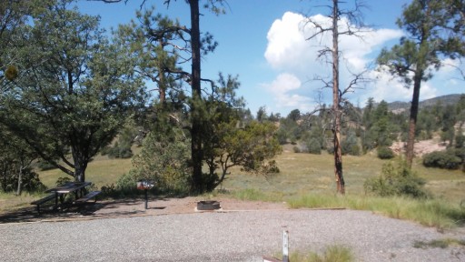 We arrived on a Thursday afternoon. All the electric sites were full. Pulled in to a tent camp site with our bumper pull. Beautiful view of the mountains. Peacful. Sunday most of the sites cleared out so moved to an electric and water camp. The bathrooms were nice and clean. They have a fire pit, grill, electric, water, and picnic table. Rained in the afternoons. Saw deer multiple times thru the campground. Walking distance to the lake. Caught a good amount of trout in the evening. Close to Gila Cliff dwelling. Must see if you camp here. Roads up there are steep and narrow. Great view. Site needs a shower and the dump site was closed. Had to dump in Deming Nm.