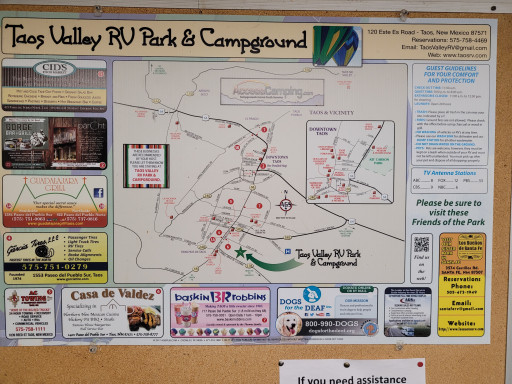 Very happy with this park, clean and well managed. Lots of sites with partial shade. Good shower and laundry facilities. Places to walk the dog. Playground area for kids. About 3 mi. from the walkable fun part of town so you will need a toad or rent a car to fully enjoy Taos and the surrounding areas. We stayed at site#16, only had campers on one side of us, nice and private. I recommend this camp to anyone coming to Taos.