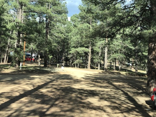 This is a nice family park, nestled in the pines, most sites have a good distance between each other. It's a family-oriented Park with lots of activities like horseshoes, shuffleboard, cornhole, there's a nice strenuous hike to an old turquoise mine, 600 vertical feet in one mile with nice views of the valley. Shower gets about a 9 out of 10.