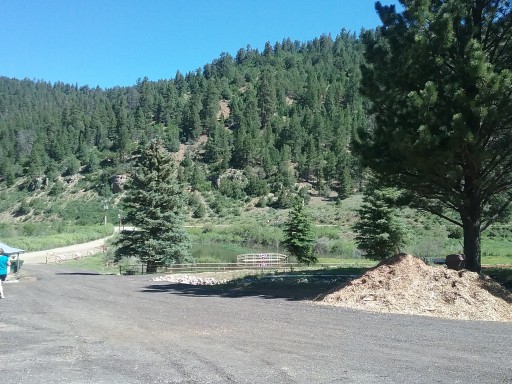 We stayed her for a weekend trip to Angel Fire. This is a small campground with about 25 spots located about 250 yards off Rt.64. This road isn't heavily traveled, so not much noise from the highway. The spots are pretty roomy and the hookups are all in good condition. The camp hosts were very friendly and helpful during our stay. Only downside is that the bath house and restrooms were under renovation. Not much of an inconvenience as we had full hookups. We'll stay here again if we are in the area