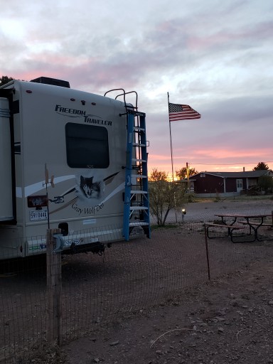 We wanted a park near Alamogordo, to visit White Sands NM and several museums in the area. Mountain Meadows is nicely out of town, with a good view of the mountains to the east and sunset to the west.
