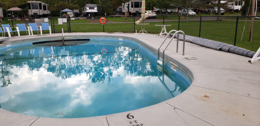 Located this campground on Park Advisor. Paid $40 for full hookup. Friendliest owners I've ever met. Bathrooms and showers very clean. Small store and covered front porch with rocking chairs. Has heated pool, wifi, and play equipment for kids. The seasonal residents take pride in their properties and maintain them well also. Would highly recommend.