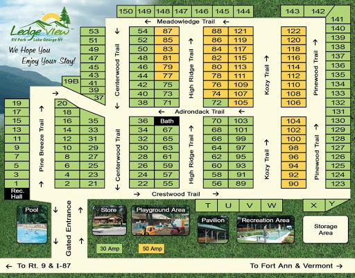 Camping pour VR très propre et très tranquille. Avec piscine de 5 pieds de profondeur, une salle de jeux avec plusieurs jeux gratuits et une table de pool et quelques arcades, plusieurs l'article a vendre pour se dépanner, un park pour enfants, de beaux petits chemins tous asphaltés facile a circulé avec les vélos et les trotinettes ,des blocs sanitaires très bien entretenus et propre et somme toute assez neuf, de beaux grands terrains droit, animaux interdits ainsi que les enfants de 4 ans et moins. La vue est magnifique avec les montagnes et les arbres majestueusement grands. Proches de tout: magasins, très bons restaurants et attractions ainsi que le George Lake. Et je termine en vous certifiant que tout les campeurs sont incroyablement amicaux et sympathiques, tous le monde vous salue bien haut de la main avec un beau sourire accueillant et une attitude agréablement courtoise.