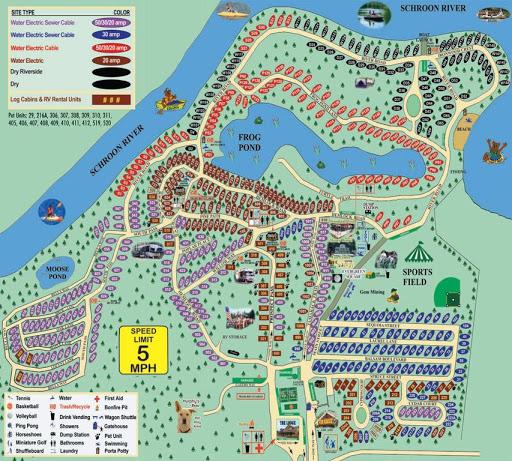 Got lucky, booked through Thousand Trails (Trails collection/ Encore) at the last minute and got a good level pull through RV site for opening weekend with full hookups including water 50amp or 30 amp electric and sewer. Popular for RV Campers. But nice tent sites near the river in a pine covered loop of this large campground. There are planned activities and fun kids all day. My dog enjoyed the dog park. Bring your walking shoes and enjoy along walk around the large campground or rent a golf cart for the day and get there faster. Recommed bikes. Looking forward to coming back.