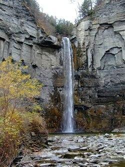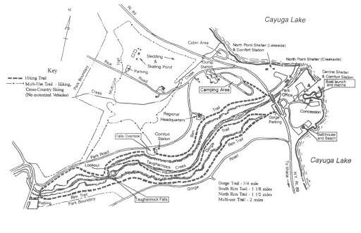 We did not stay here, but were staying at Robert H Treman SP. We took a day trip to see this water fall and did a side trip just to check this CG out. Sites are generally pretty small. Park Advisor states maximum 30'. I would say there are only a few that can handle that size. Class B, small Class C, or a very small trailer for most sites. Many of the sites are set up angled backwards from the direction of travel down the one-way loop road. They would be impossible to back into, unless you drive the wrong way down the road. It appeared many had. The waterfall is not to be missed, though.