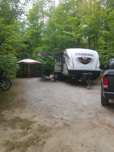 Beautiful campground with a waterfall on the AuSable River! Sites are large with lots of trees! Pool, camp store and many dog paths! I loved it! Only problem is the bad wifi! Couldn't get any TV channels.