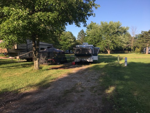 Large sites, easy access, well maintained. Great play grounds and plenty of room for kids to run. Sites are 30amp with No water... also No cell signal! But the views of the lake were great! On a clear day you can see Toronto.
