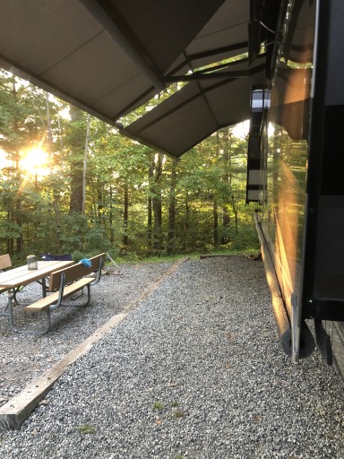You have to travel back into the woods a little bit. up a an incline. With the 44 foot RV you have to schedule ahead of time. This is an off the road spot but people that know this site stay often and take the best sites. The Overlook to Asheville is amazing for RV’s if you are lucky enough to find one. I will stay here.