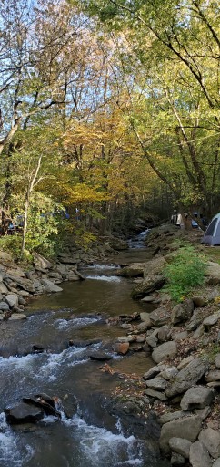 The sites were tight (downside of it being an older campground I guess). There was limited space for parking the two vehicle. Enough room to sit out on the picnic table or set up a couple chairs beside the creek. The soothing noise from the creek drowns out most of the road noise.