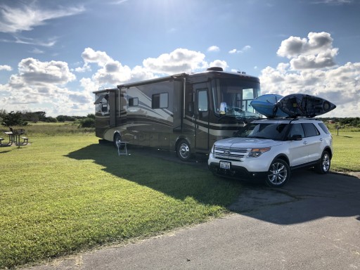 Stayed here in a 40’ motorhome and it was great. Nice quiet location with decent flush toilets and cold showers. There are water faucets near the bathrooms where you can get water but you cannot hook up a hose to it. There is a dump station just up the road from the park which I accessed twice. The grass was not mowed on many of the sites but if you choose a site that isn’t mowed they will mow it for you. The campground was virtually empty when we arrived and getting in and out was really easy. The beach was really large and we pretty much had the beach to ourselves. The temperatures were in the lower 90’s while I was there but it cools down really quick at night with the steady breeze off the ocean. You are close enough to the water to hear the waves at night but you cannot see the ocean from the campground. They have a road made from crushed sea shells leading out to the beach. It is about a 1/4 mile walk from the car to the water but it is a level walk with lots of sea shells