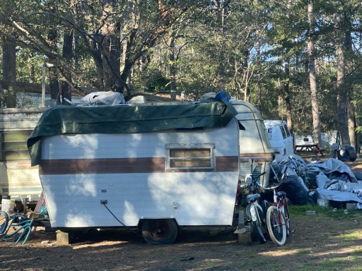 Almost pulled in for a weekend stay. The entrance had a huge mud puddle that you couldn’t navigate around. Which was my first red flag. From the road it looked so run down that we wouldn’t even pull in. Tarps were hanging from trees, trash was everywhere. It was not welcoming looking. In all honesty it looks like an inner city homeless encampment.