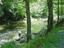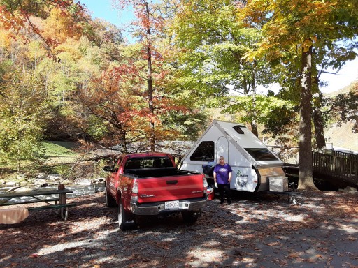 "A" loop waterfront W/E, picnic table. Fire rings on this loop are rusted out and nearly unusable. Unable to connect to wi-fi, and area is so remote there's really no cell signal. But the river is beautiful and stocked with trout twice a week, fish right from your campsite. Drive or walk to the camp store on the hill above for gas, ice, firewood, kerosene, or fishing gear and food. Bathhouse is clean and spacious.