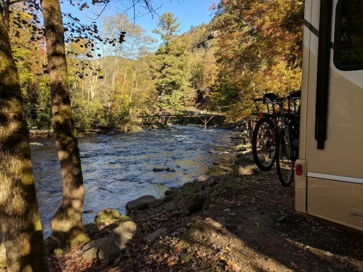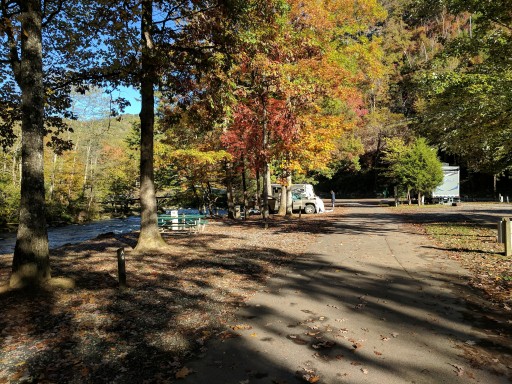 It was nice to find a great surface to park motorhome on. Full Hookups incl. WiFi and Analog Cable. Sound of River Rapids right out the door (good sleeping). Spent prior week in Pigeon Forge which is like man-made amusement park mega-center. (Never again).