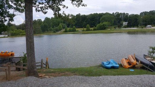 We stayed here for 3 nights. The staff were all very helpful. Very close to the Asheville Airport but we only heard two planes the entire time. That may because of the slow air travel due to Covid. This was just a 15-20 minute drive from Asheville’s city center. Less than 5 minutes from a Walmart and tons of restaurants. Very quiet. The paddle boating on the lake looked nice and we saw several people doing that and having a good time. There were also canoes and kayaks available, although we didn’t personally have time to try any of that. The office was closed to walk-ins due to Covid but someone met us at the front porch and gave us all of our check-in material as well as our gate key. The WiFi was spotty. We never got our cable to work correctly, but we are pretty certain it was user error, and not the camp’s fault. One negative was that they charged $3 each for our daughter and son-in-law, who live in Asheville, to come to visit us at the RV for a couple of hours.