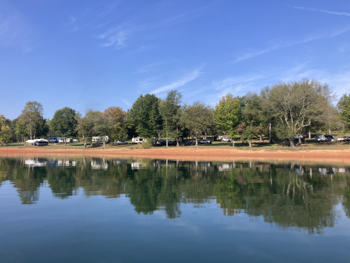 Stayed at this campground in the GC section (nicest section) of the park for a week in October 2024. Most every campsite has a Lakeview and is close to the water. Boat ramp and parking area was very nice. Paved roads gravel sites. Very quiet and laid back park. People are friendly there. Downsides are it is very hard to talk with anyone at the office. They seldom answer the phone. Also the bathrooms need some attention. Not very clean and shower was cold if someone used it right before you came in to shower. The running path that goes through the park and over the dam is very nice and scenic. Overall pretty nice place to stay