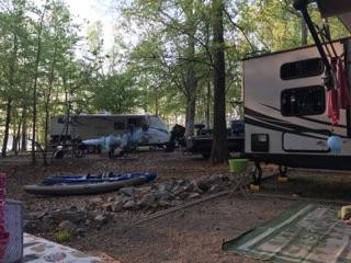 This lake is huge. Had a number of different campgrounds. Be sure you have directions to the one you're at or you could be driving around for hours. We stayed in the Nutbush campground right on the lake. Offers senior discounts. Level, gravel sites where we stayed