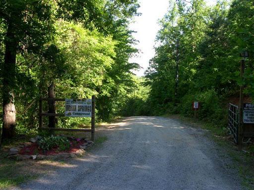 We stayed 2 weeks at Indian springs campground in space 18. My Coach is 43ft long I pull a 24ft enclosed car trailer. Our site was level with grass. The owners are outstanding, friendly and very helpful. I had a plugged air cleaner and they loaned me an air compressor to blow it out. Even though it is down a long hill and steep entrance. I had no issues going down or up the hill. Would definitely stay again. Priced reasonable.