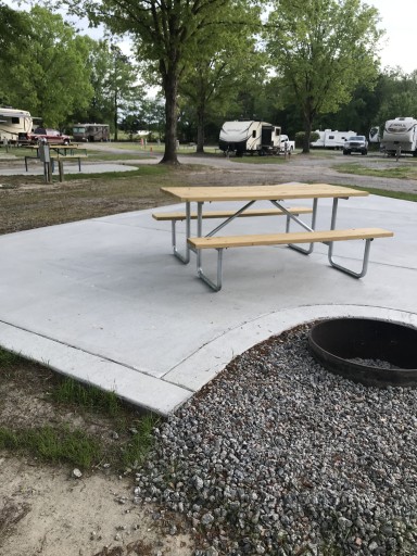 We had to stop over on our way south to Florida. This KOA is conveniently located off I-95 and we were greeted by the owners, Rick and Cindy. They are the most welcoming and nicest people we’ve met on our travels. They have been working hard on renovating this KOA since acquiring it a few years back. What a transformation! Their hard work shows! We love having a patio on our site, especially for our dog going in and out. Keeps everything clean. And if you don’t have dinner planned, Outback Steakhouse and Zeno’s Italian Restaurant both deliver to your site! Cindy has the menus at check-in. We have decided that this KOA will be our future stop over every year!