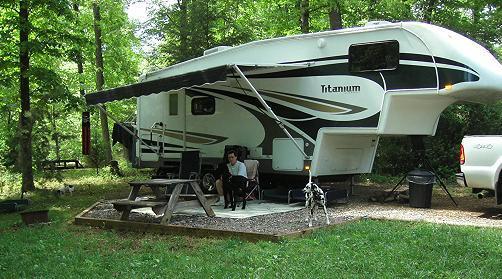 If you want an RV park where you can enjoy time with your furry friends and the outdoors, you will love this park. The owners, Connie and Sandy, are enthusiastic and dedicated to making your stay fun and worry free. The park is beautifully maintained with many off leash areas for the dogs, including a pond, creek in the woods, agility area, and general running areas according to sizes. They even have facilities to wash and groom your dogs (my standard poodle enjoyed the pond and spent a lot of time being cleaned off!). As the prior writer said, there are plenty of activities for the humans also. We have spent the last 2 Thanksgivings here and are planning on the same for this year. A deluxe site has a wooden deck and a small fenced in yard, but all the sites have plenty of room between them with full hookups.