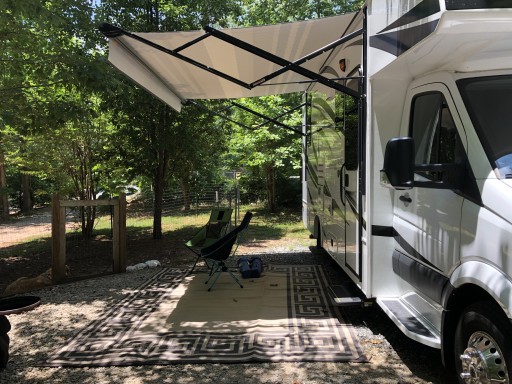 Location- Woodsy Park with lots of tree coverage located in a remote area. The grocery store is 25-35 minutes away thru windy roads. No grass spots for your dog outside of the dog parks. Dogs bark a lot throughout the day. Customer service is average and moody at times. Would not stay again, over rated on app. average RV park.