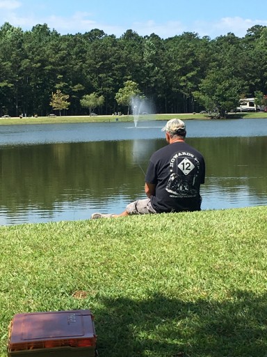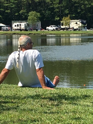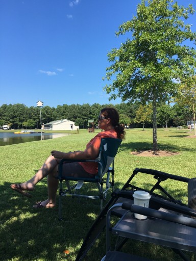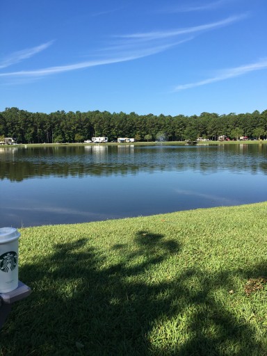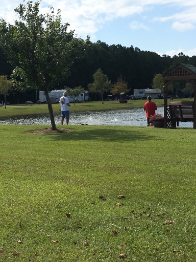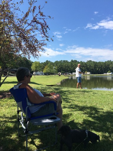 We didn't expect much from this campground. Looking at it from Google, it's a square with a pond in the middle. In reality, it is surrounded by trees and the pond is bigger than you think. The grounds are like a golf course and the parking is all level. The showers are a little lacking, but this campground caters to larger rv sizes that have showers. Wildlife abounds with deer seen on the edge of the campground and bear in nearby (outside the campground) clearings. Visit the Great Dismal Swamp nearby while you are at it. Our real enjoyment we're the hundreds of dragon flies that flew around our campsite. The mosquitos are BAD as soon as the sun sets, so bring your deet or get inside!