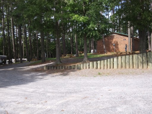 Our first time here; i would not recommend this because of the very hilly terrain. The sites are built on a hill with no precision to try to make them level or easily accessible to the driver. The road is narrow gravel with drainage ditch on both sides. I have not visited the bathroom so I have no comment.