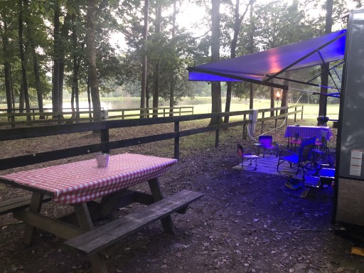 This was our very first time camping with our new travel trailer. We wanted a campsite so we could try it out and learn with with full hook ups, less then an hour from us, and they were able to give us a nice large spot for our first time parking our 34ft trailer. We had a quiet spot with a view of the farm pond and the entire campground was charming and quaint and quiet. Cedarock park was only a short 5 miles down the road too! A perfect first place to camp for us and staff was kind and helpful