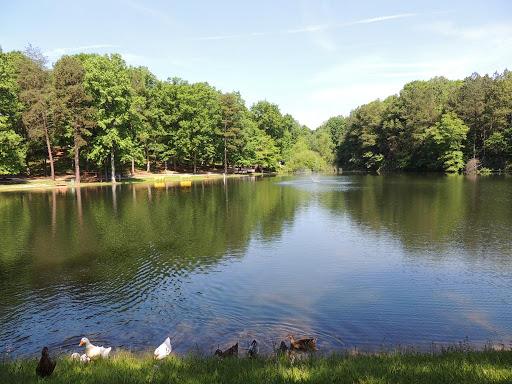 Upon arrival we were escorted to our lot by the staff. Everyone was friendly. The bathhouse has 3 showers and two stalls for the entire park. The pool is nice and the giant bouncing balloon is loved by the kids. The putt putt course they have by the office is in terrible shape and has leaves all over it. It has not been maintained in a long time. As for the campsite, we were on site #3 and it was really nice to have a concrete patio next to our trailer, especially due to a very rainy weekend. Didn’t fish in the pond so can’t talk about the fishing. Had Karaoke Sunday night and it seemed to be the highlight for most people. Overall a nice park but needs some upkeep.