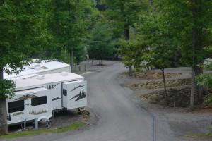 Stayed here in August of 2016. We were in a 44 foot RV, and made it to the upper level drive through sites. The staff were very friendly and helpful, and guided us up to the site. A few hairpin turns, so the lead was very helpful. The views are incredible. Nice, quiet, clean park as compared to others we checked out in the area. Even has a security gate. The bath house is very nice! Looks pretty new. Would definitely return, and just may do so in the fall to enjoy the turning leaves of the beautiful views!