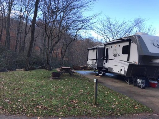 We love this park, nestled in the Blue Ridge Mountains. We’ve been here twice — both times missing the foliage. But it’s still a beautiful setting. Showers are great, people friendly, sites spacious.