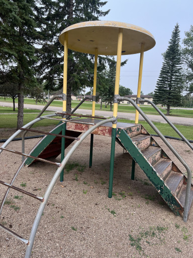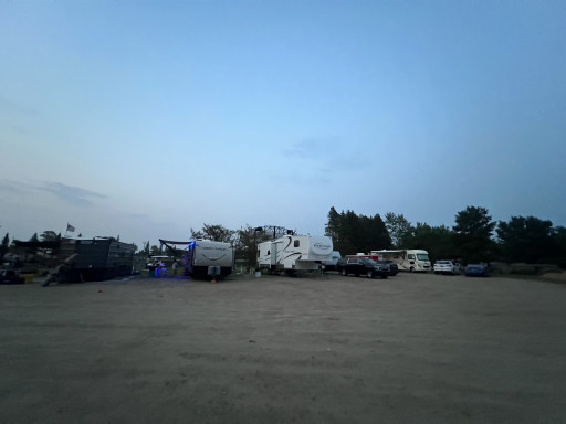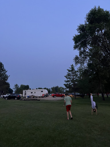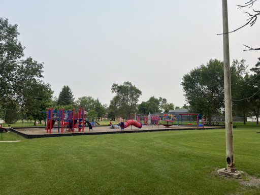 Great little place to pull into as an overnight stay. All sites were lined up fairly close in a row but were level and easy to pull in or back in to, but not much shade. Has baseball fields around it, a community pool, and a nice playground. There’s a grassy area behind the sites, concrete pad with picnic tables at each site, clean bathrooms but no showers, quiet and peaceful. You can hear trains passing through in the evening. Carrington is a beautiful town. It left us with a good hometown feeling 😊