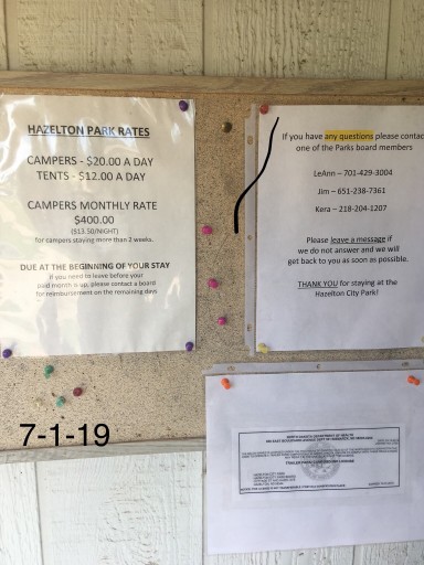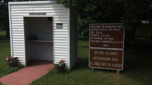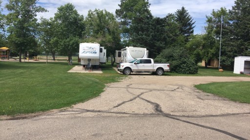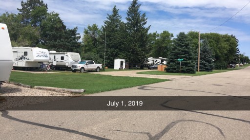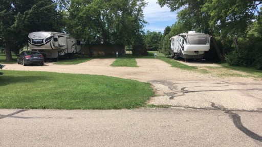 A nice little RV park where it looks to be six full hook ups. Shower-bath house right behind the lots. City playground is also behind the lots with picnic areas, typical playplayground stuff, horseshoe pits, volleyball nets, basketball court, baseball field. The Park area behind the campground lots is frequented by cross-country bicycle riders. Nice quiet area.