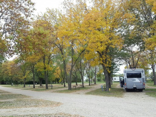 Picked this campground from the Park Advisor app and stayed one night. Camp is beautiful and well maintained with large shade trees with most of sites being shaded. Laundry and showers clean!! Staff exceptionally nice and escort you to your site. The only reason I gave it 4 stars instead of 5 is you do hear all the traffic noise from I-94. Other than that it's a great campground and I would stay again. Stayed in 5th wheel for 1 night.