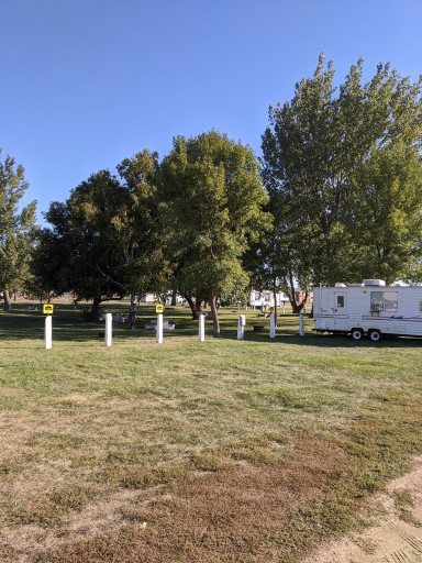 Great little "gem" along I-94 to stop for the night. Quiet, small town park and a $15.00 fee. Water and electric. We stopped on a Friday late afternoon and were lucky enough to have a few baseball games being played for our entertainment. We camped in a 40 foot fifth wheel.