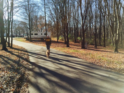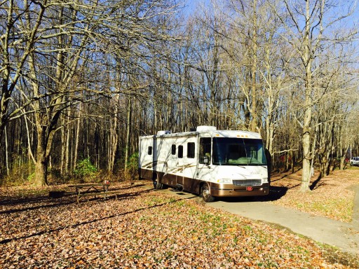 We did not check out the bathrooms or showers as we had a full hook-up site. Lovely. New concrete at the pad. Close to I-70 but far enough off to be quiet. One of the nicest Ohio state parks we have stayed at.