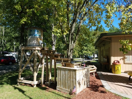 Campground is mostly shadded except for premium sites. The staff is very nice and helpful. You buy wood at campground and they deliver to your site ($7.00 a bundle). In addition, it is located very close to a dairy bar abd pizza resturant.
