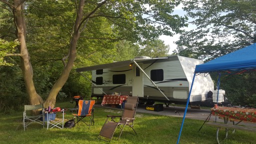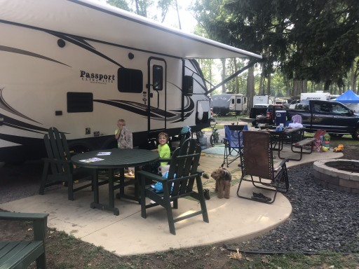 Stayed this past weekend, Site 155. Check-in process quick, water/dump station upon entry, all sites clearly marked and easily accessed with angled back-in. Camp store fully stocked with reasonable pricing. Saturday night camp-wide ice cream social was fun for all ages. Lots of space and privacy between camp sites, very dog-friendly. Beach was marked for no pets and that was NOT followed by many so perhaps a dedicated area for the four-legged family members would be great!