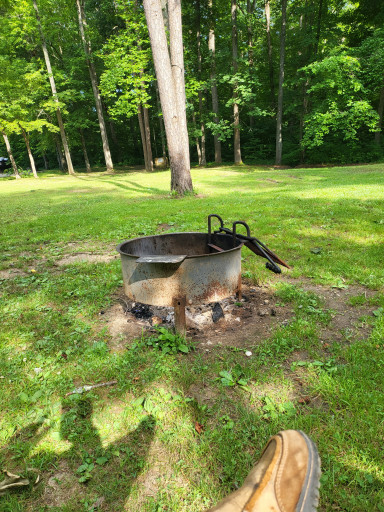 Electric at most sites. Central water throughout park. RV dump. Open all year. Nice hiking trails. Two fishing lakes. Swimming beach. No cell or data in campground. It is available at Lodge two miles away. Golf course and marina five miles away on the Ohio River.