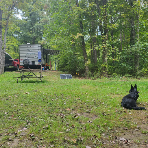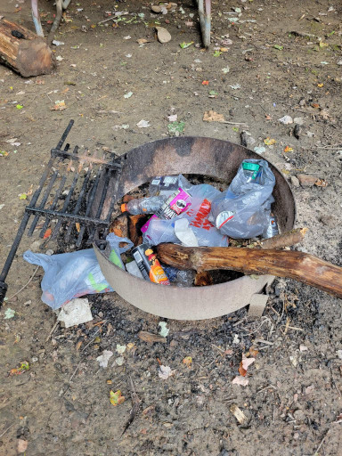Very nice little campground. Spot 49 had a ton of litter. We cleaned it up. With the nails. Very nice bathrooms for vault toilets 🚻. See crew cleaning.