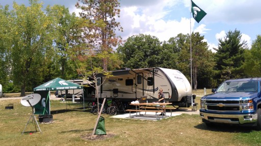 This campground is located on a Great Lake for boating and fishing. The campground has very nice sites,restrooms and they now added a beautiful swimming pool. The lake also has many restaurants that are accessible by boat. It is our favorite campground close to home!