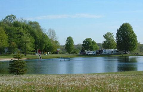 Most sites are fairly level. Avoid site 10 if large rig. It drops off quite a bit at back in site. Pretty ponds, nice store, playground and pool.