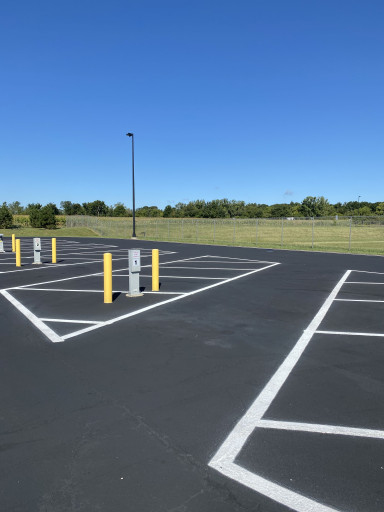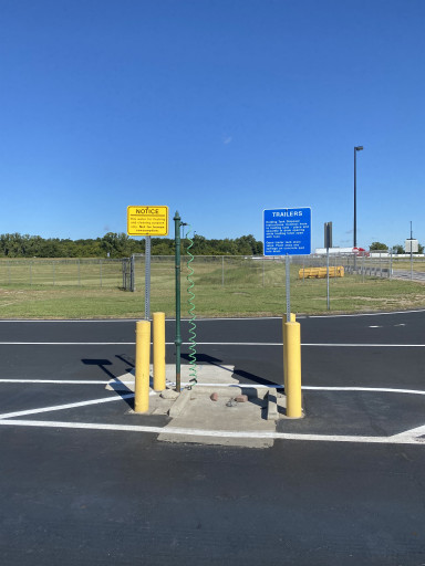 $20 For 30/50A Hook Ups. Potable water and dump station at entrance of paved lot. Part of a rest stop with fuel and convenience store 24hrs. Lot was empty when here. Very convenient and clean. Don’t want to pay $20, park with big rigs.
