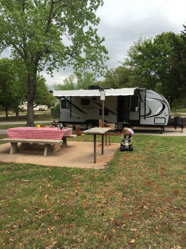 Park staff were extremely friendly and helpful. Pull thru sites were long but you have to be careful were you finally park as there is sloop to the asphalt pad. Water faucet were different but figured out how to connect. Plus, the places they put the water pipes was not logical. Power stands were nice and functional. Did not check out the bathrooms. Several other nice parks around Arcadia Lake that you have access with vehicle pass. Lots of trees. Perfect location just a couple miles off of I-35, and very close to Edmond stores and places to eat. Only negatives were the gates aren't locked and there appear to be some long term campers, and maybe a little cleaner.