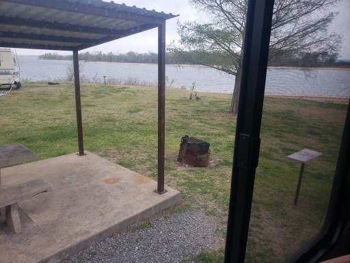 It was a perfect sunny 83° day & we pull into this gorgeous park overlooking the Red River! It was about 40' to the beach. We stayed at site 11- I think that loop may be older as it's gravel sites compared to the next section had cement pads at each site. Still great- level & beautiful sites. We had a covered cement table & fire ring with cooking grate. Wish we could've stayed longer but we were on our way from MI to TX! Well worth the $26! We stayed on April 8, 2021 (so it's open early April).