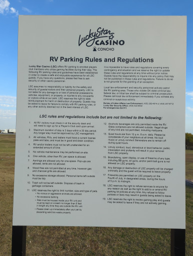 Lucky Star Casino offered excellent value for a 3-night stay. While it's slightly off the main highway, the free three-night stay with full hookups made it worthwhile. The casino has eight total back-in sites, with site #5 being our home for the three-nights.