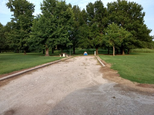 Right below the spillway of Keystone Dam near the powerhouse. Nicely spaced lots, pretty level but large pools of water in sites after heavy rains. Full hookups but hose bibs can be almost 50 feet from some campsites.
