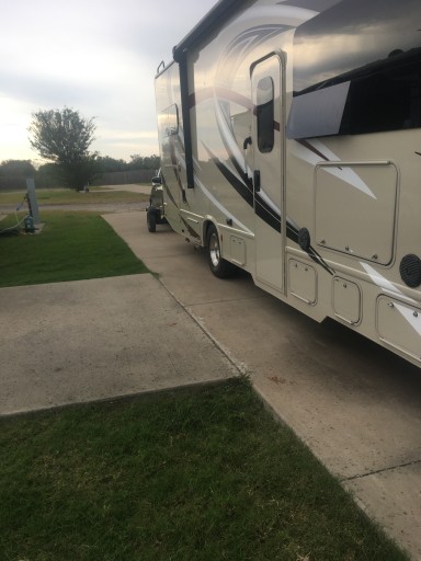 Super long, level concrete pull through pads. Great rate. Full, good hook ups. Free wifi but we didn't test it. Didn't try the bathhouse but it looked great from the outside. No dog park but plenty of area to walk them. Great restaurant on site. Gas station with great convenience store on site. PERFECT overnight spot. Staff super nice.